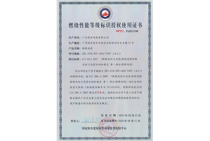 ISO質(zhì)量處理體系、環(huán)境處理體系,作業(yè)健康安全處理體系、計量保證體系認證企業(yè),具有廣東省電纜作業(yè)僅有的工程技能研討開發(fā)中心,南洋電纜具有多項專利并屢次參加國家標準及作業(yè)標準的擬定,不斷立異開發(fā)新產(chǎn)品。35kV及以下電纜產(chǎn)品取得全國工業(yè)產(chǎn)品出產(chǎn)許可證,電線產(chǎn)品通過我國質(zhì)量認證中心CCC認證,110kV電纜通過我國電力企業(yè)聯(lián)合會產(chǎn)品判定,220kV電纜體系通過預(yù)判定實驗;500kV電纜體系通過型式實驗和荷蘭凱馬(KEMA)認證,加添華南地區(qū)500kV電纜產(chǎn)品的空白,可替代進口產(chǎn)品,電纜制造技能抵達世界搶先水平。